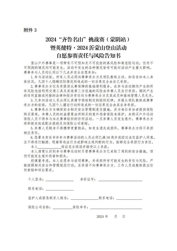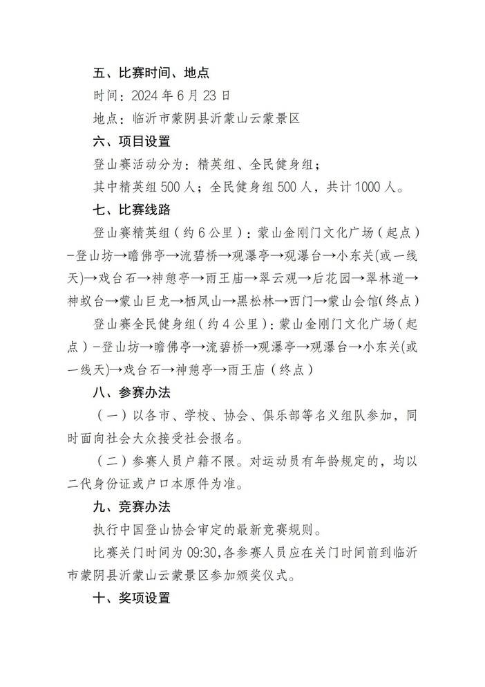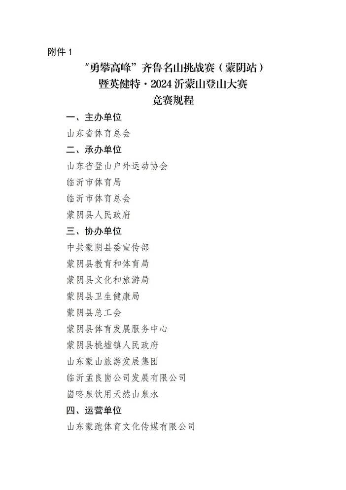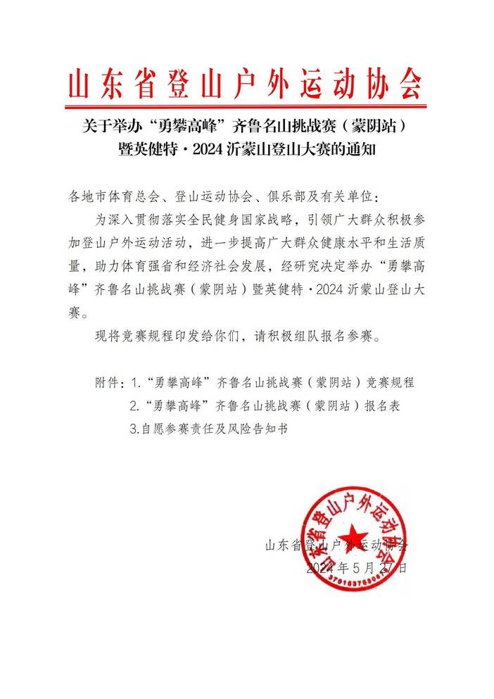 关于举办“勇攀高峰”齐鲁名山挑战赛(蒙阴站)暨英健特·2024 沂蒙山登山大赛的通知