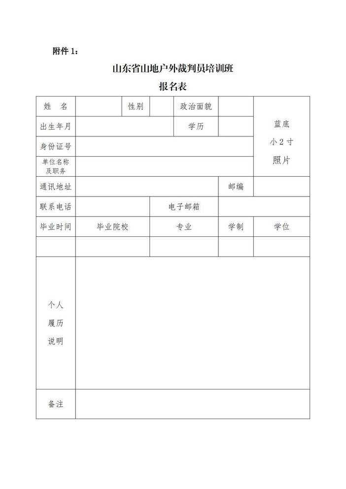 附件1:山东省山地户外裁判员培训班报名表.docx
