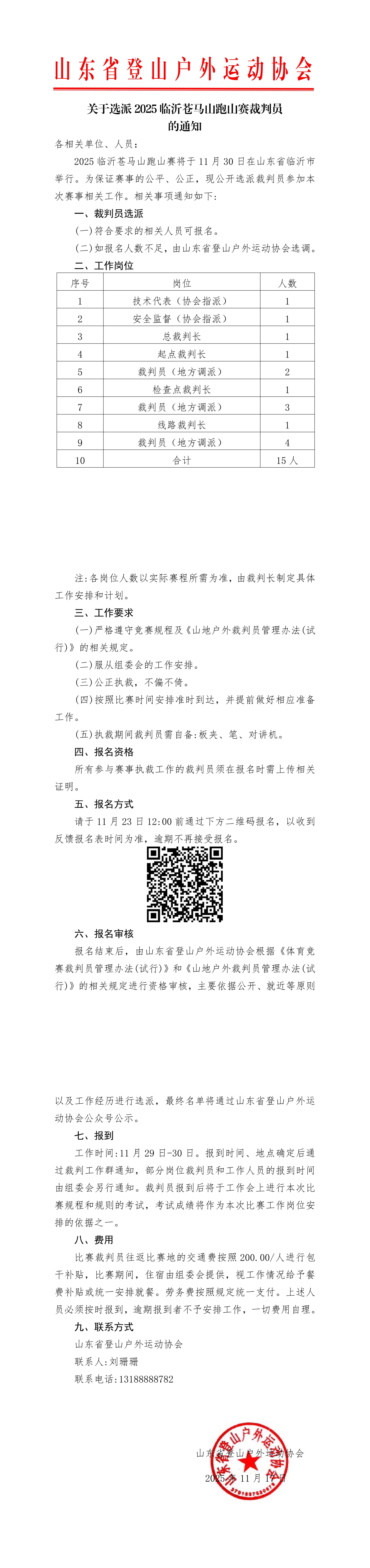 关于选派2025临沂苍马山跑山赛裁判员的通知